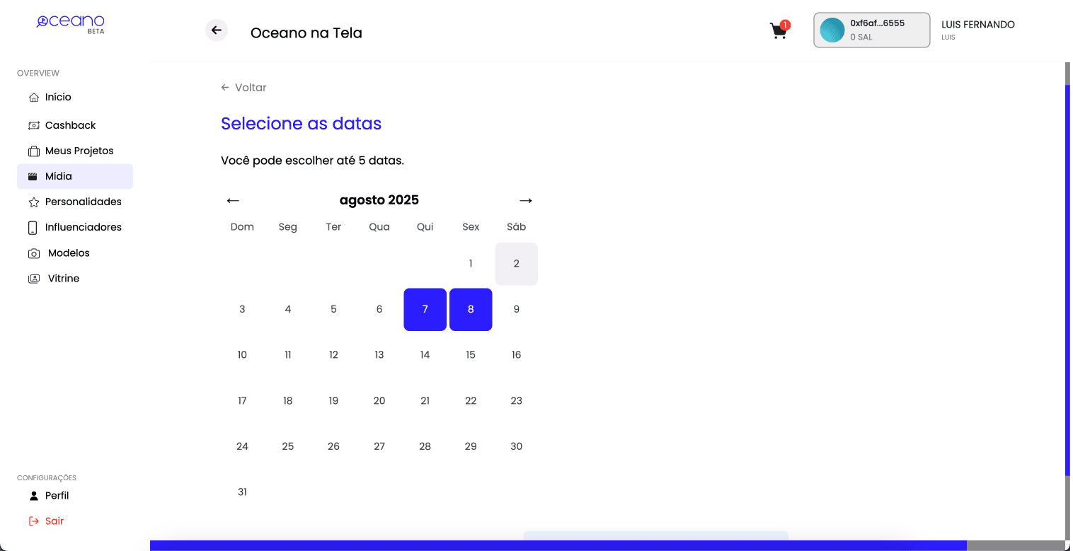 Você pode selecionar entre 1 e 5 datas disponíveis.
